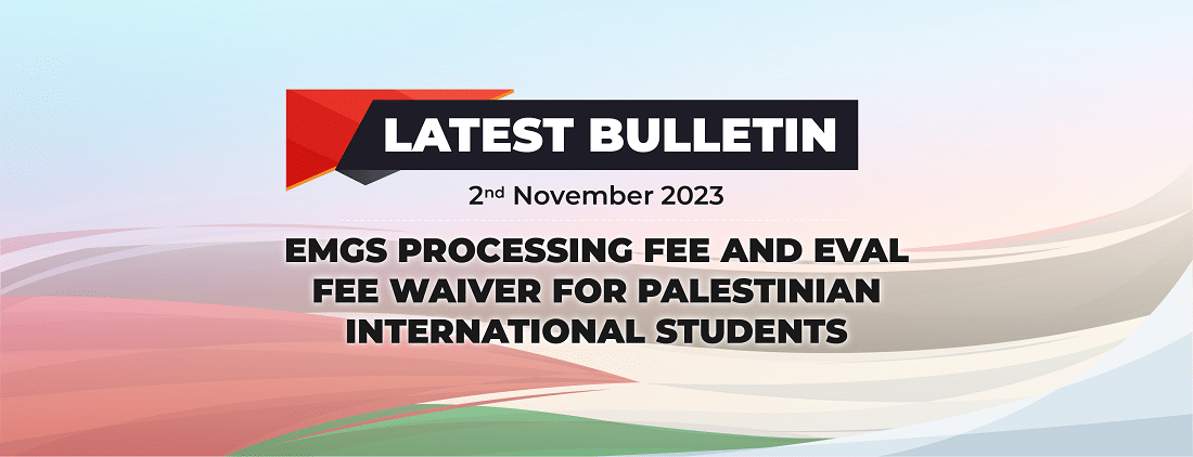 EMGS PROCESSING FEE AND EVAL FEE WAIVER FOR PALESTINIAN INTERNATIONAL STUDENTS