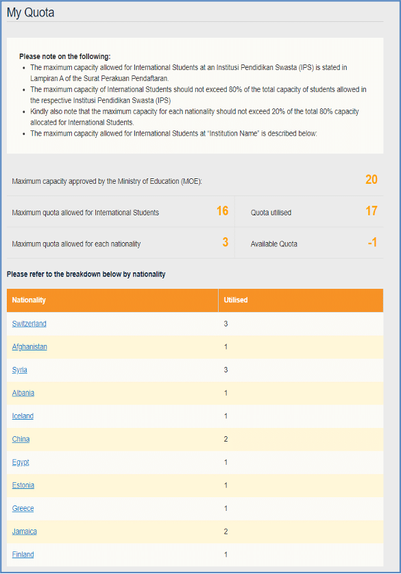 NOTIFICATION ON THE UPDATE ON THE ENROLMENT QUOTA FOR INTERNATIONAL STUDENTS FOR ALL IPS (LANGUAGE CENTRES) REGISTERED UNDER MOE